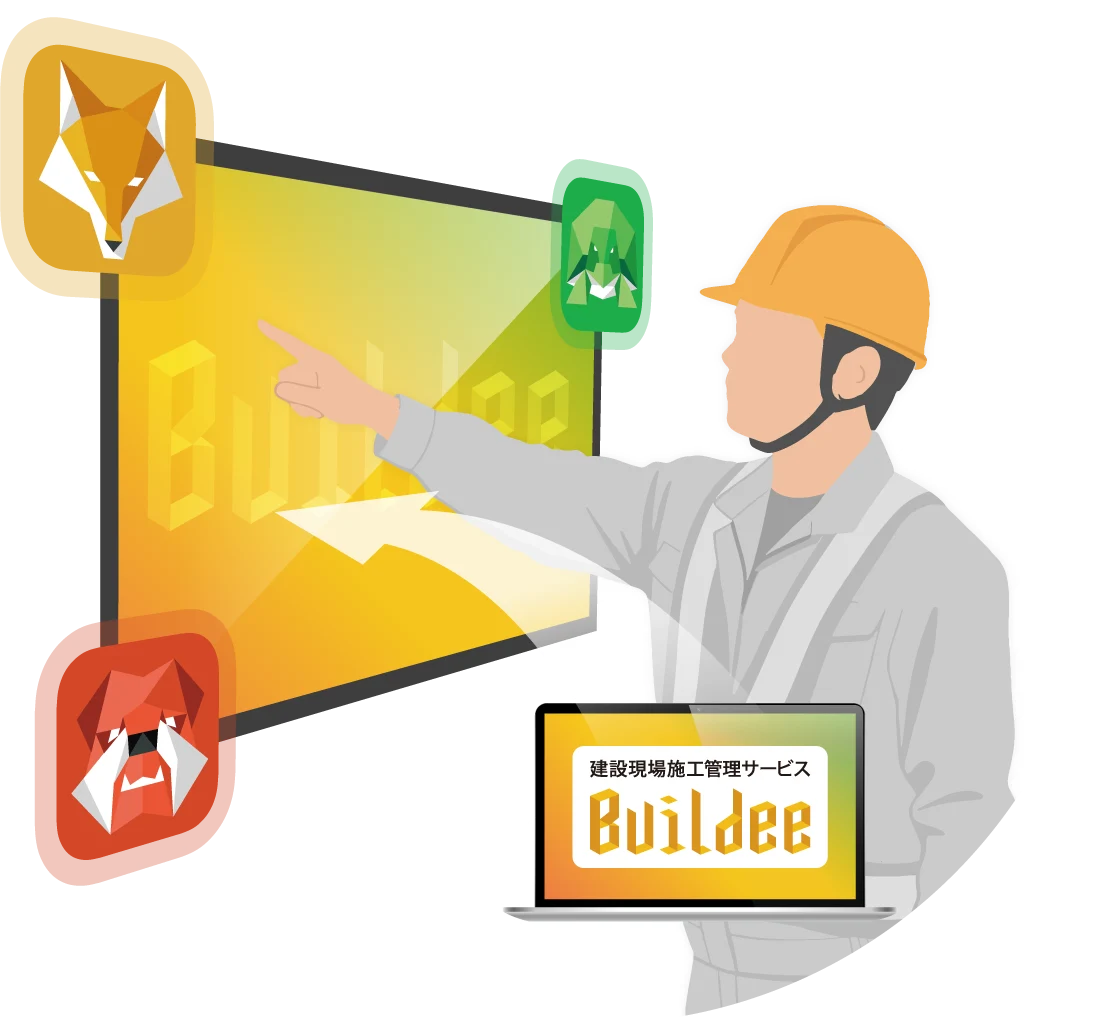 BANKENサイネージをご導入いただくことでBuildeeにご登録いただいた「作業員情報」や「施工体系図」の情報を自動連係し、サイネージに投影することが可能です。Buildeeに登録いただいている現場の資格者情報や作業主任者の情報などの絞り込みやBuildee入退場とも連携し当日入場実績のある有資格者の情報のみをサイネージにリアルタイムで投影するといった機能も搭載しています。施工体系図もBuildeeと連携していますので、作業員の出入りがあった際に抜けもれなく掲示することが可能になります。