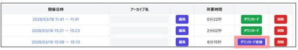 字幕付きのアーカイブ映像については、「ダウンロード変換」後にダウンロードを行うことで字幕を内蔵した動画ファイルとしてダウンロード可能になります。