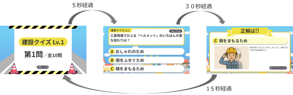 - 1日あたり10問の建設関連クイズがランダムに配信されます。