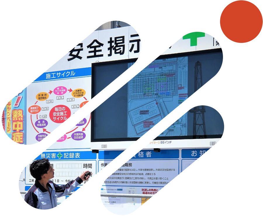 朝礼用、仮囲い用、事務所用など、ご利用シーンにあわせたソリューションをご用意しています。
